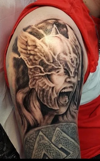 Ein Hel-Tattoo könnte für die Akzeptanz des Lebensendes und die Ruhe im Jenseits stehen. Es ist das perfekte Motiv für diejenigen, die sich mit dem Kreislauf von Leben und Tod auseinandersetzen.